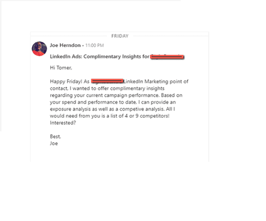 אותו דבר כמו הקודמת, רק עם אפשרות להתחיל שיחה מפרופיל לינקדאין של המפרסם לפרופיל של המטורגט.